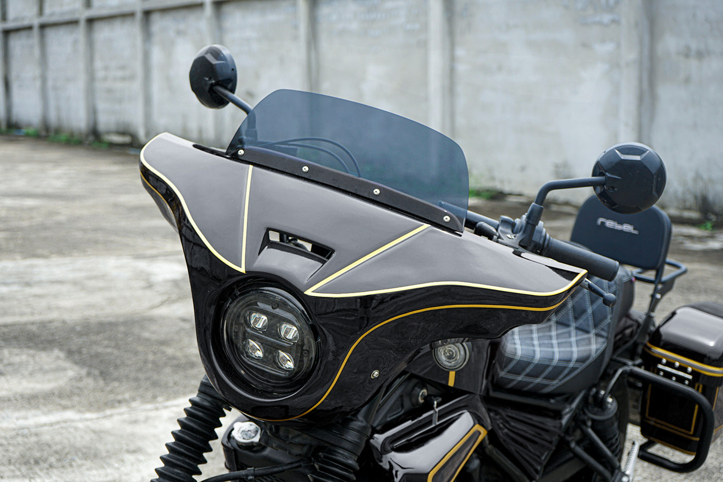 - Front Batwing Fairing Windshield Gloss Black Honda Rebel CMX 300 2020-2024